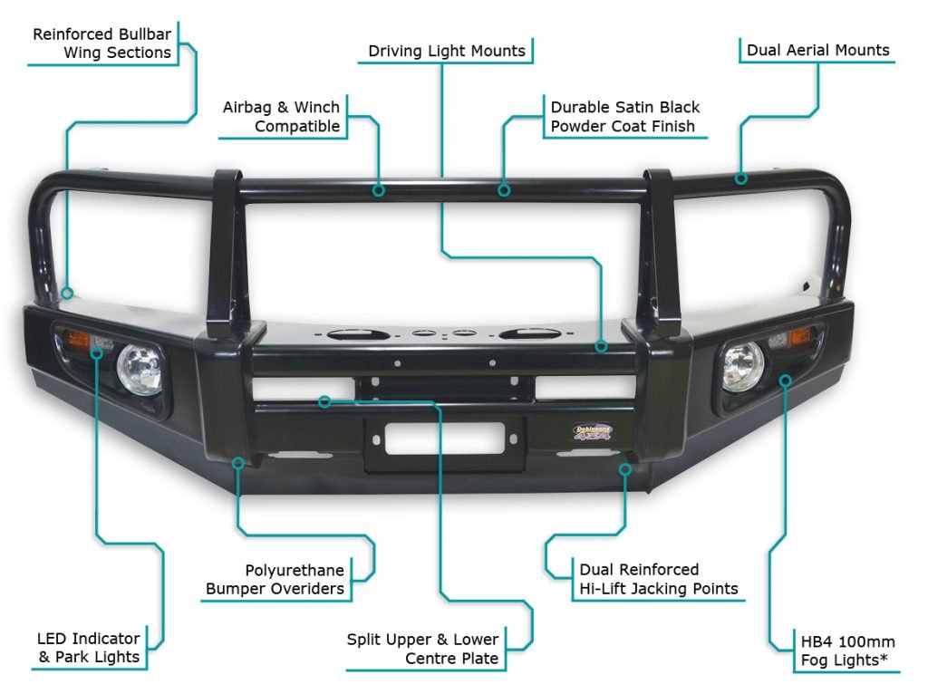 Debido al peso adicional al instalar una barra Bull y / o un cabrestante, se reducirá la altura de manejo del vehículo. Dobinsons Spring & Suspension™ sugiere reemplazar los resortes para satisfacer el requisito.
